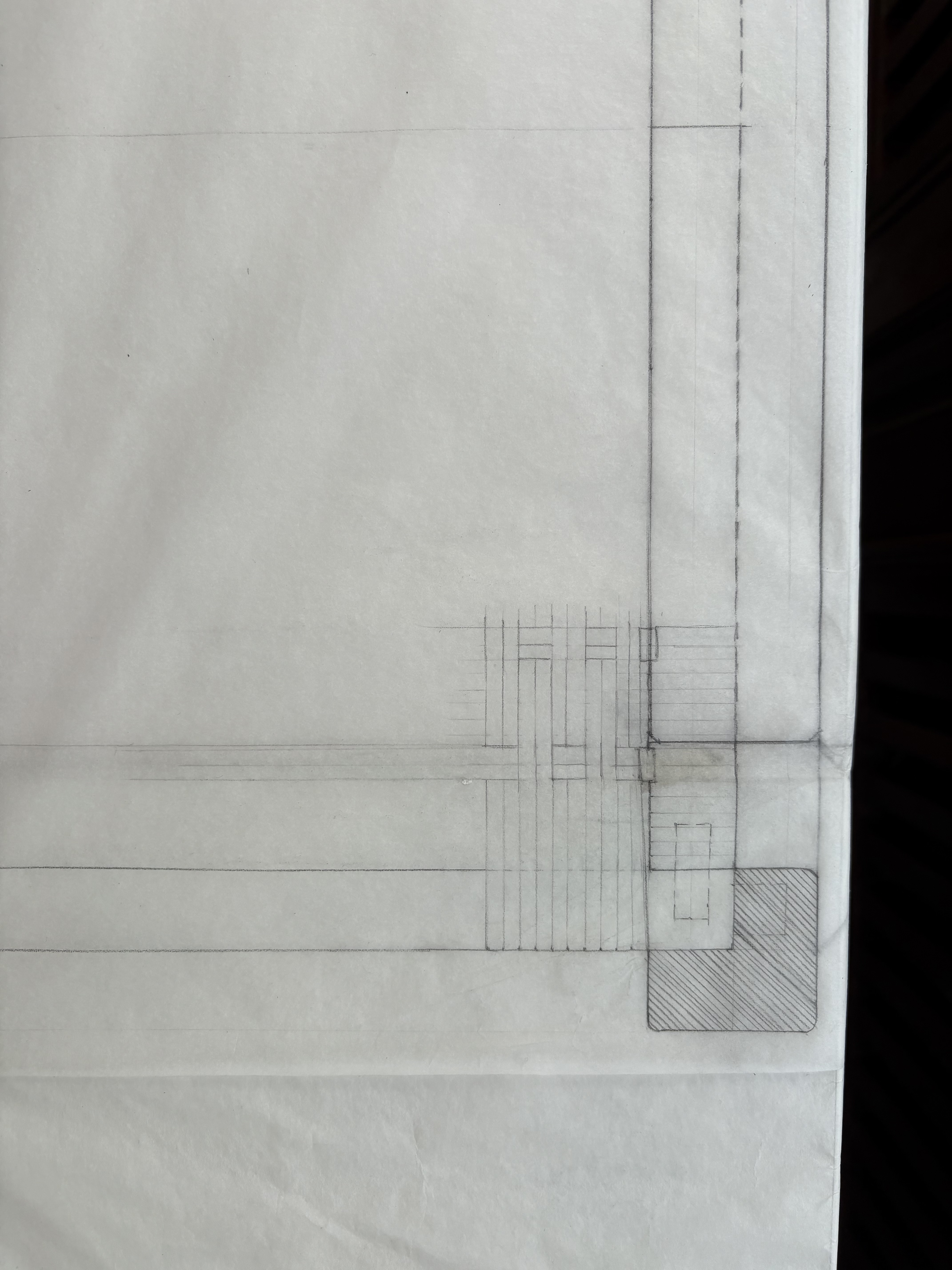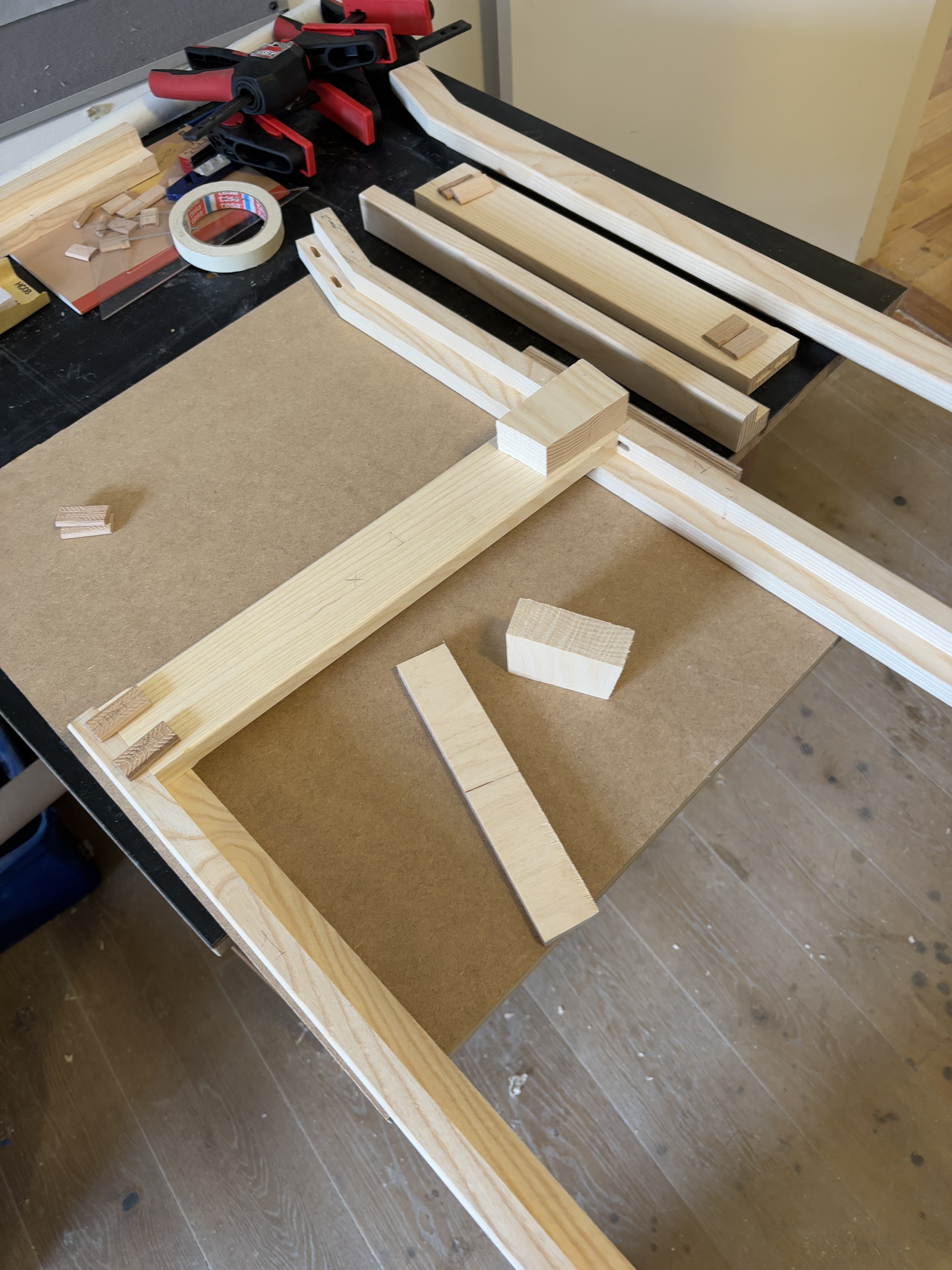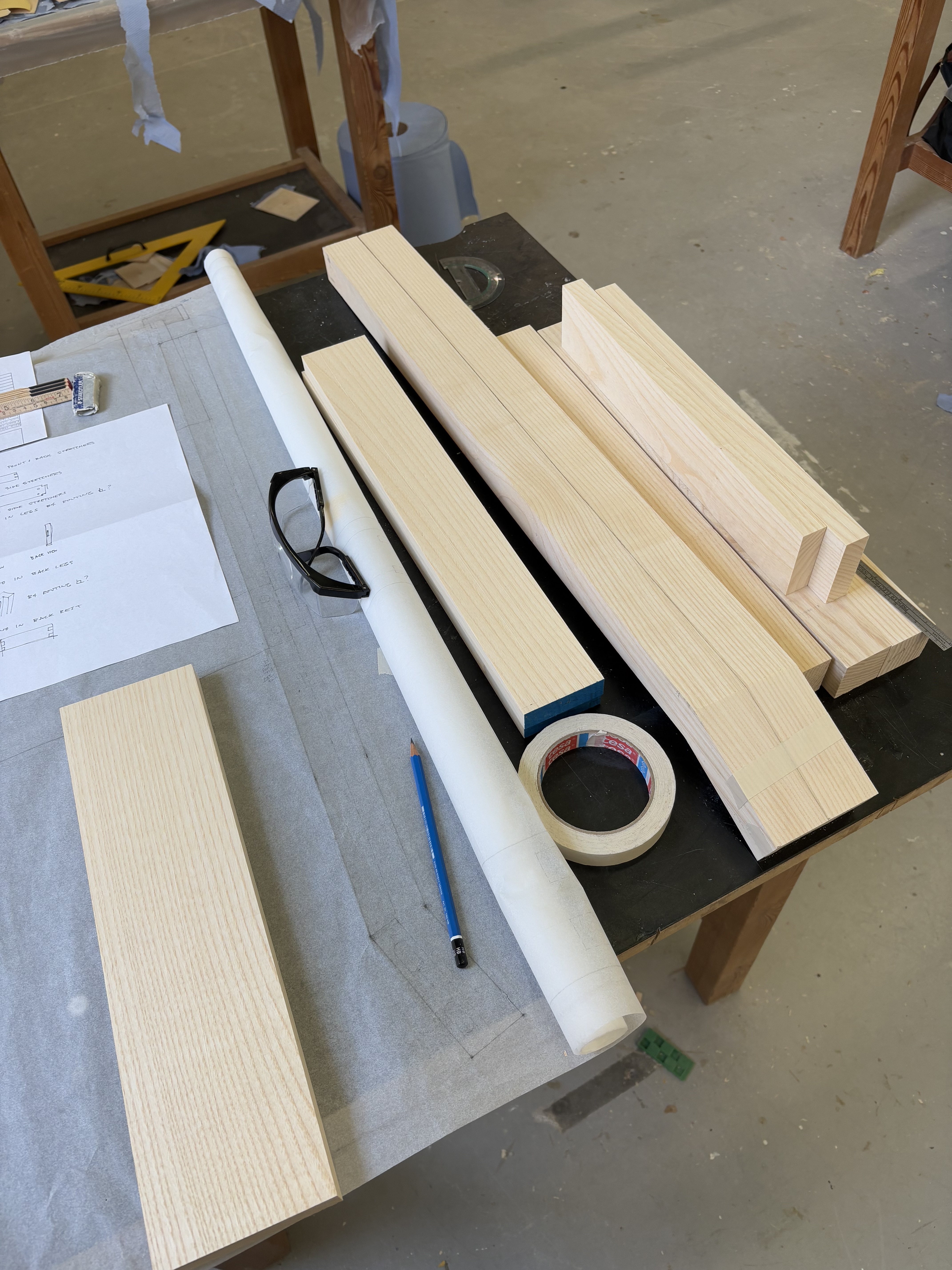 1:10 scale model. 1:1 scale cardboard model built in my flat's dining room. Practiced weaving on the cardboard model with thicker string and pins acting as the L nails used on the wood later.