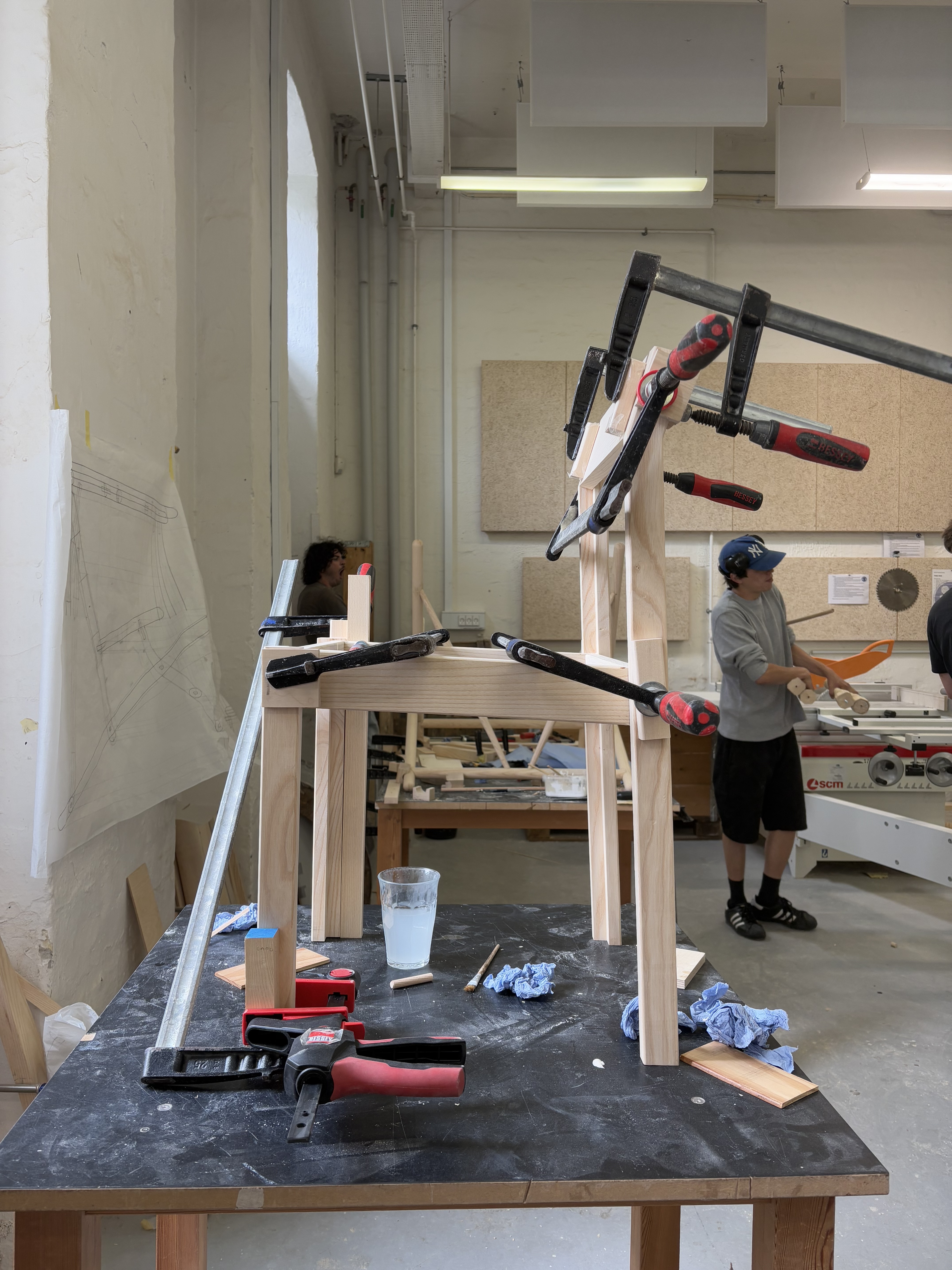 I wanted to make a chair: four legs, a back, and a seat. I enjoyed the proportions of a dining chair I have in my home. As the design naturally unfolded, there was an element that would drive the rest of the construction and design; a 90º cut in the legs. I learned about sensible construction from my teachers and visiting showrooms in Copenhagen.