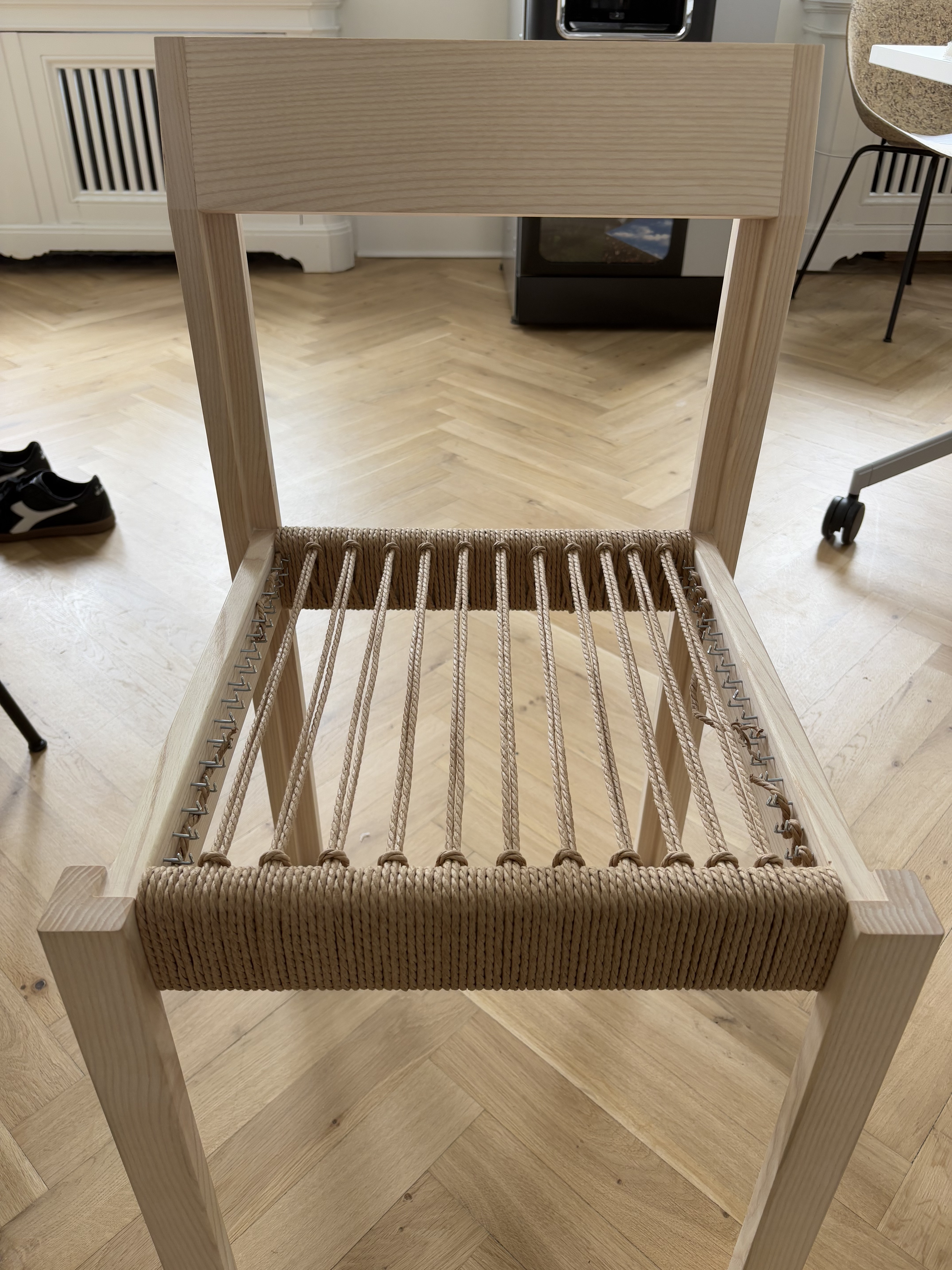 I lived in Copenhagen, Denmark for 6 weeks. There I learned about Scandinavian principles of life and design. The result was an ash wood dining chair with a woven seat made from Danish paper cord.