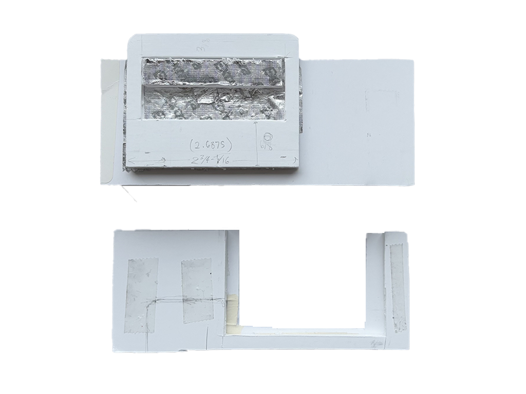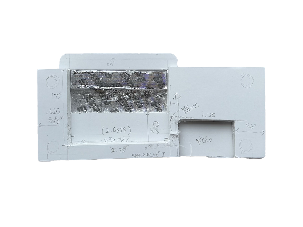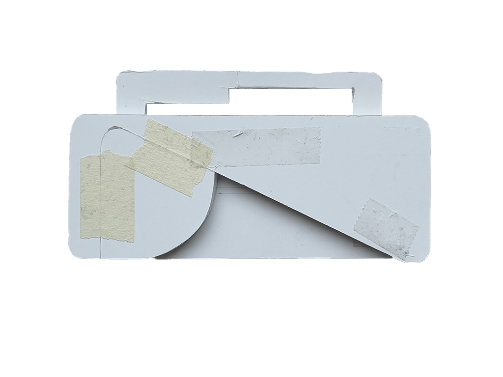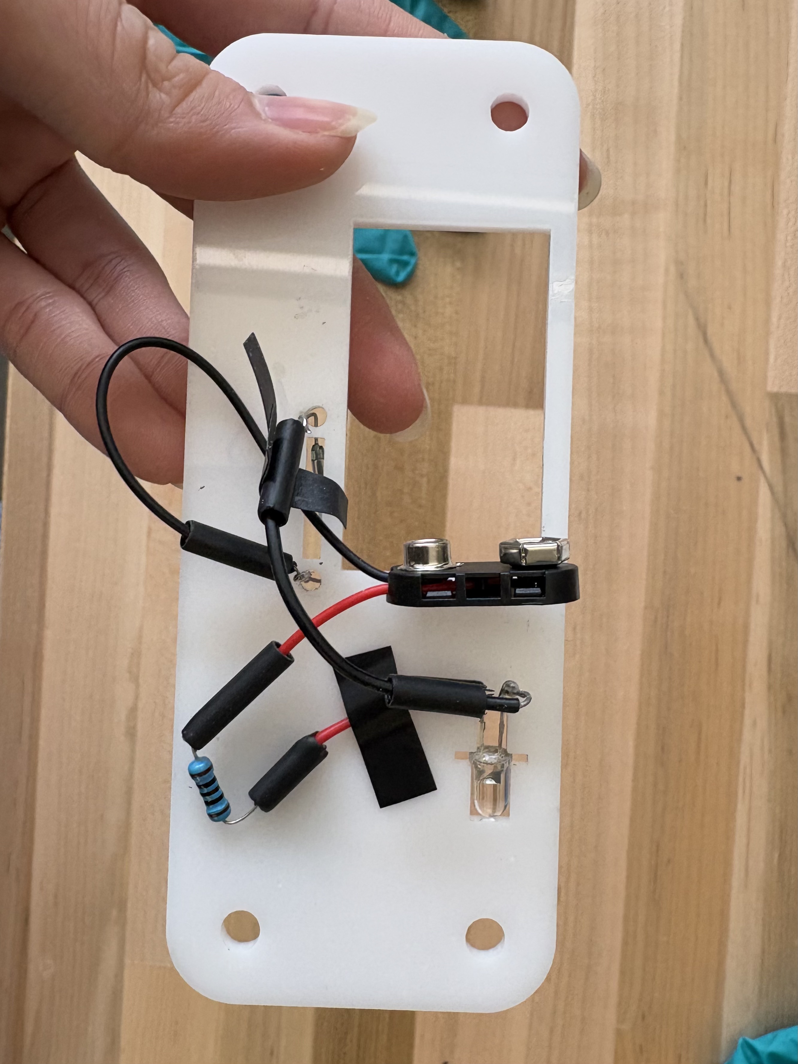 I explored how my sketches would move and feel in real life. After better understanding how the electrical components work and the space they needed, I moved forward with the horizontal orientation with a handle that acts as the switch. The light would stay on when the handle is lifted, and off when not engaged. In my models, I began to observe material placement with a gum wrapper acting as mirrored acrylic :]