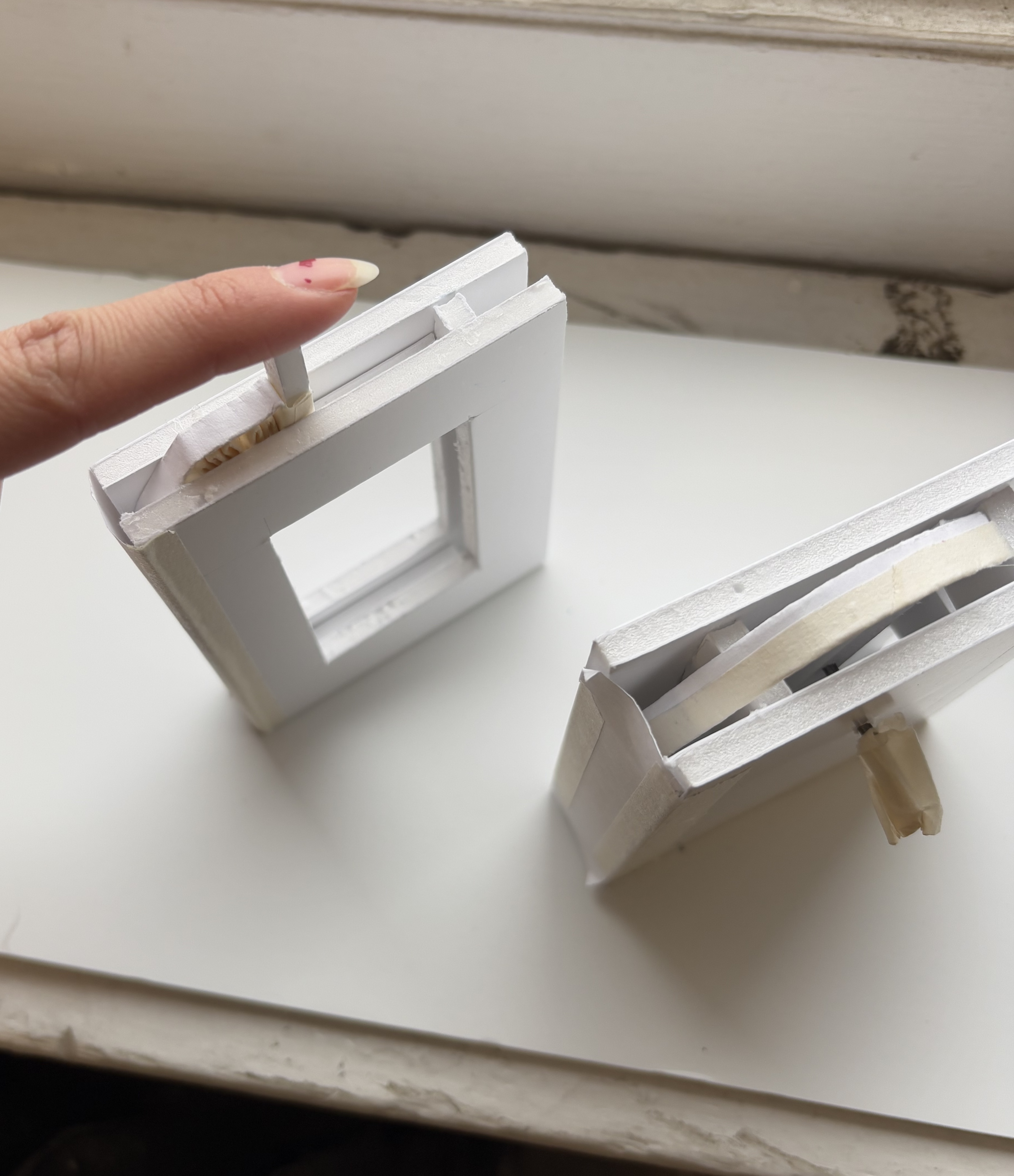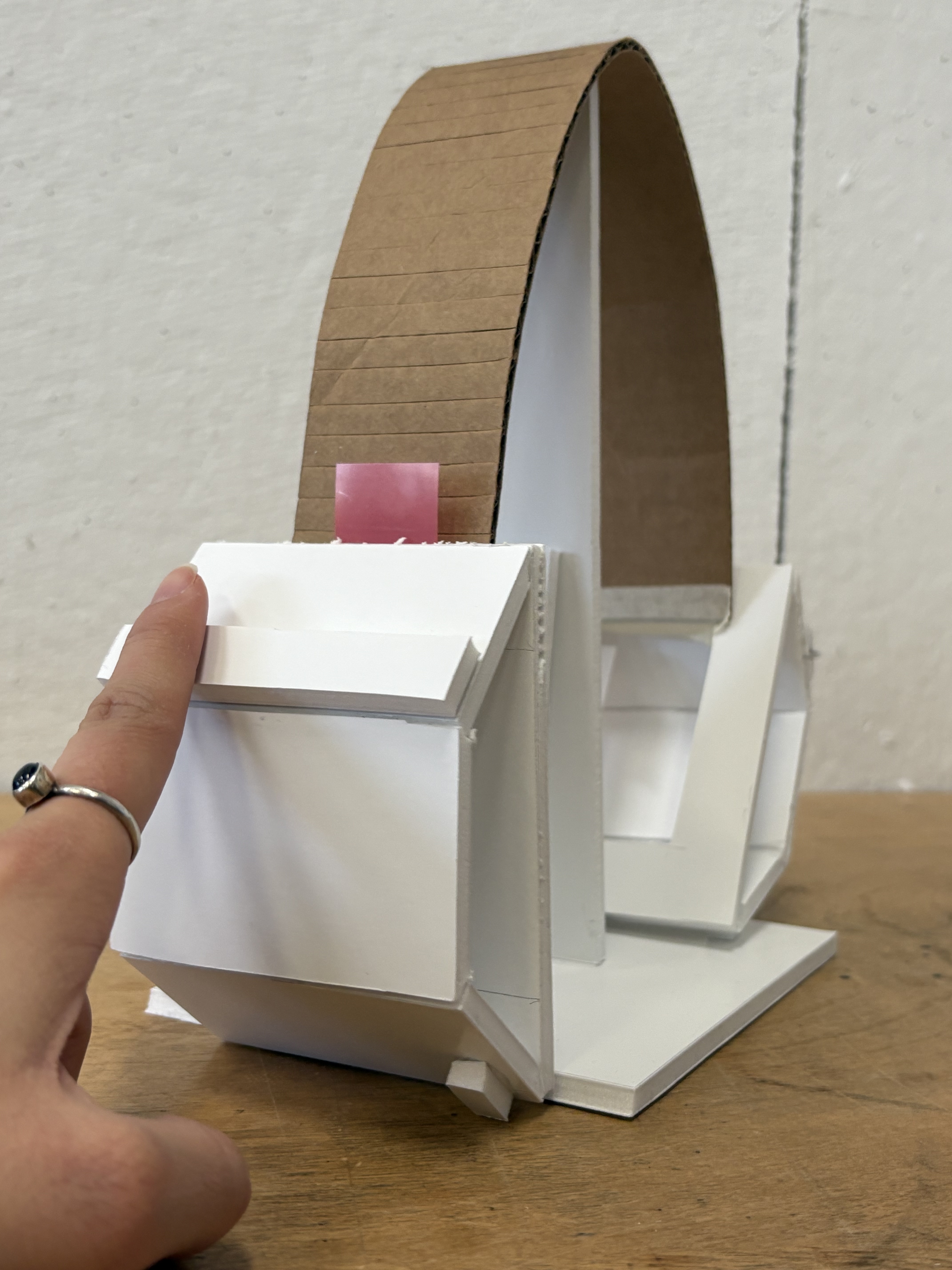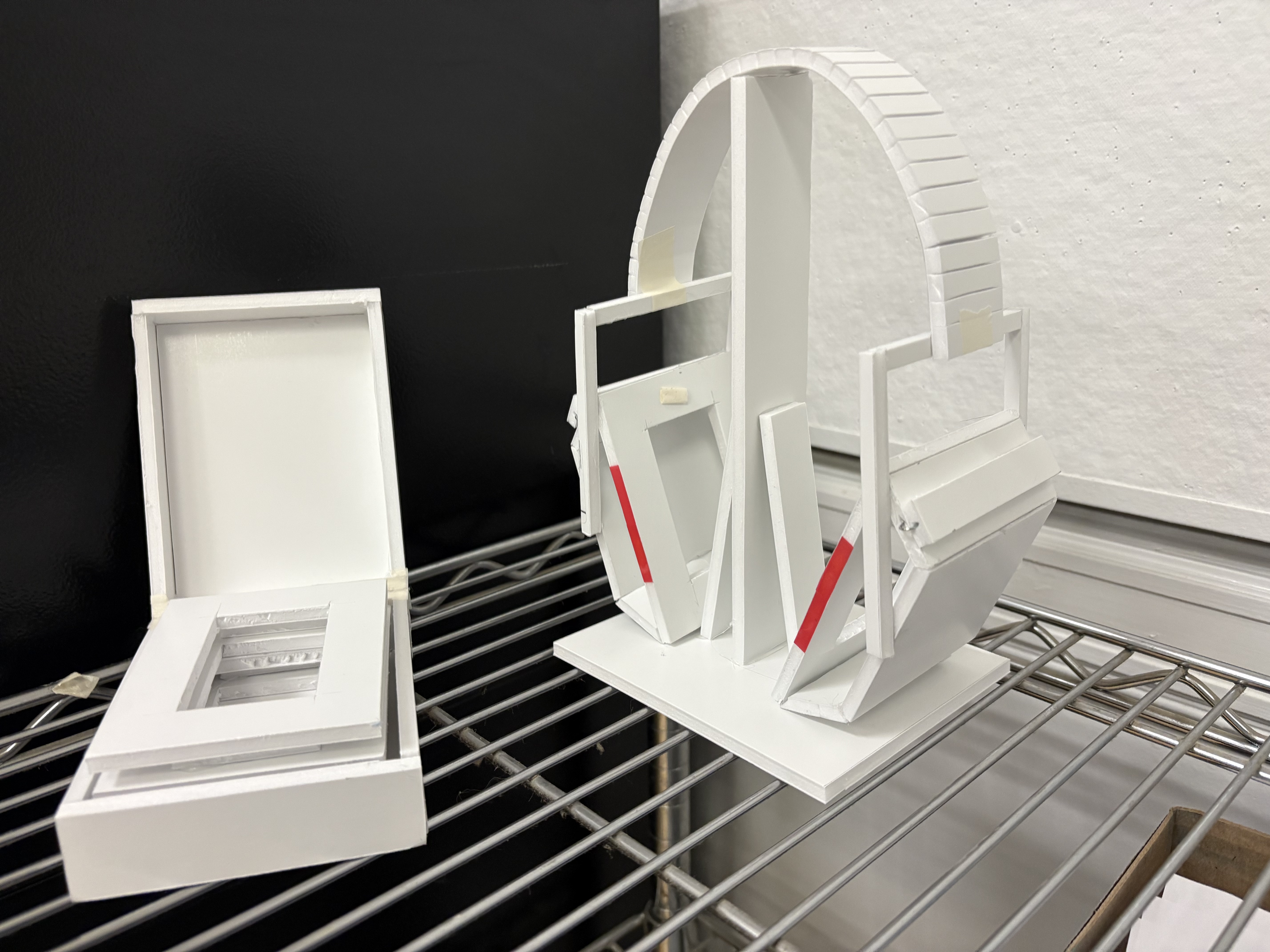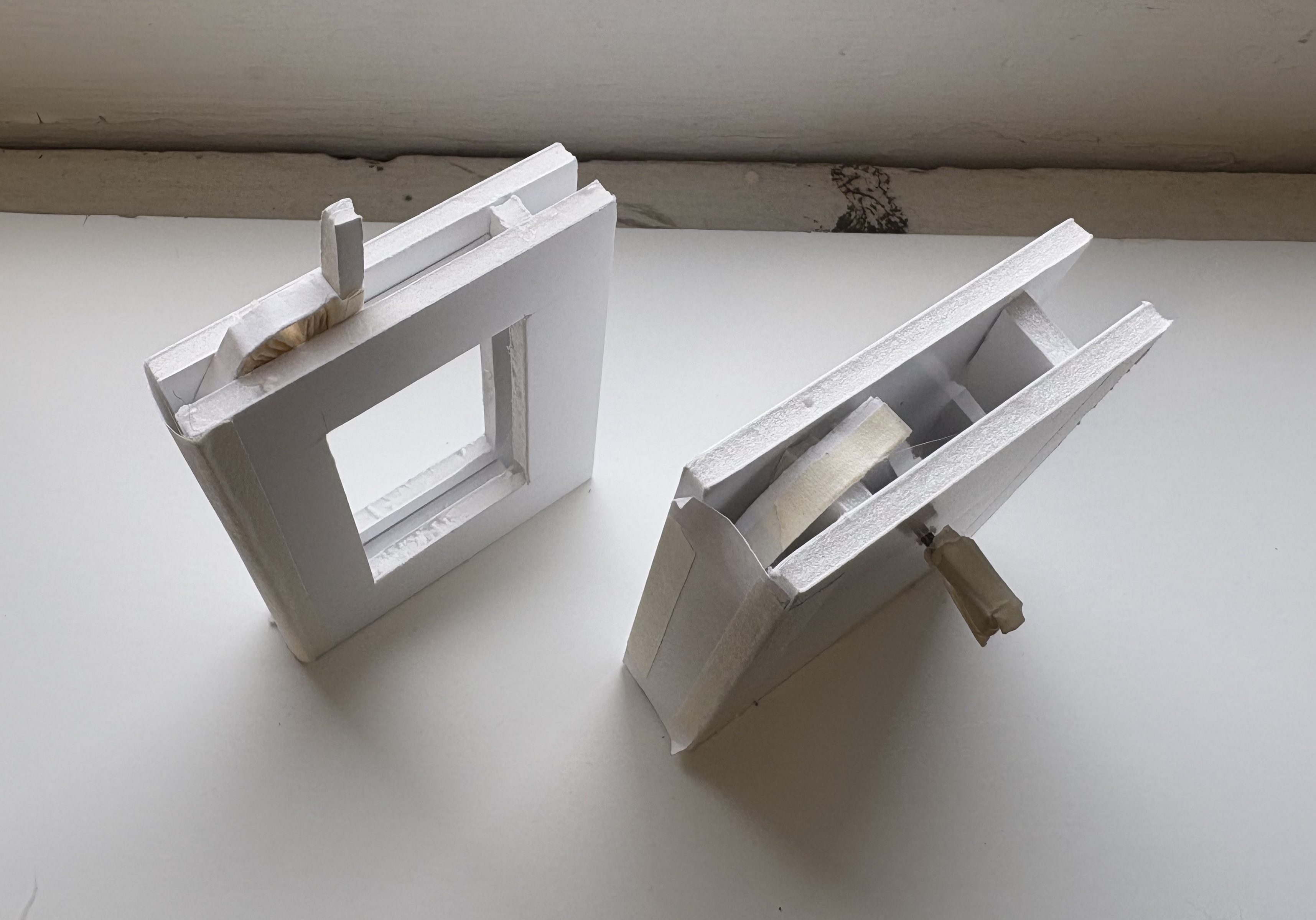 Moved away from electronics to an analogue approach. A door that opens and closes when needing to hear something in the shop or to speak to someone. Band comfort, pivots, how to compress foam inside earmuff when open.