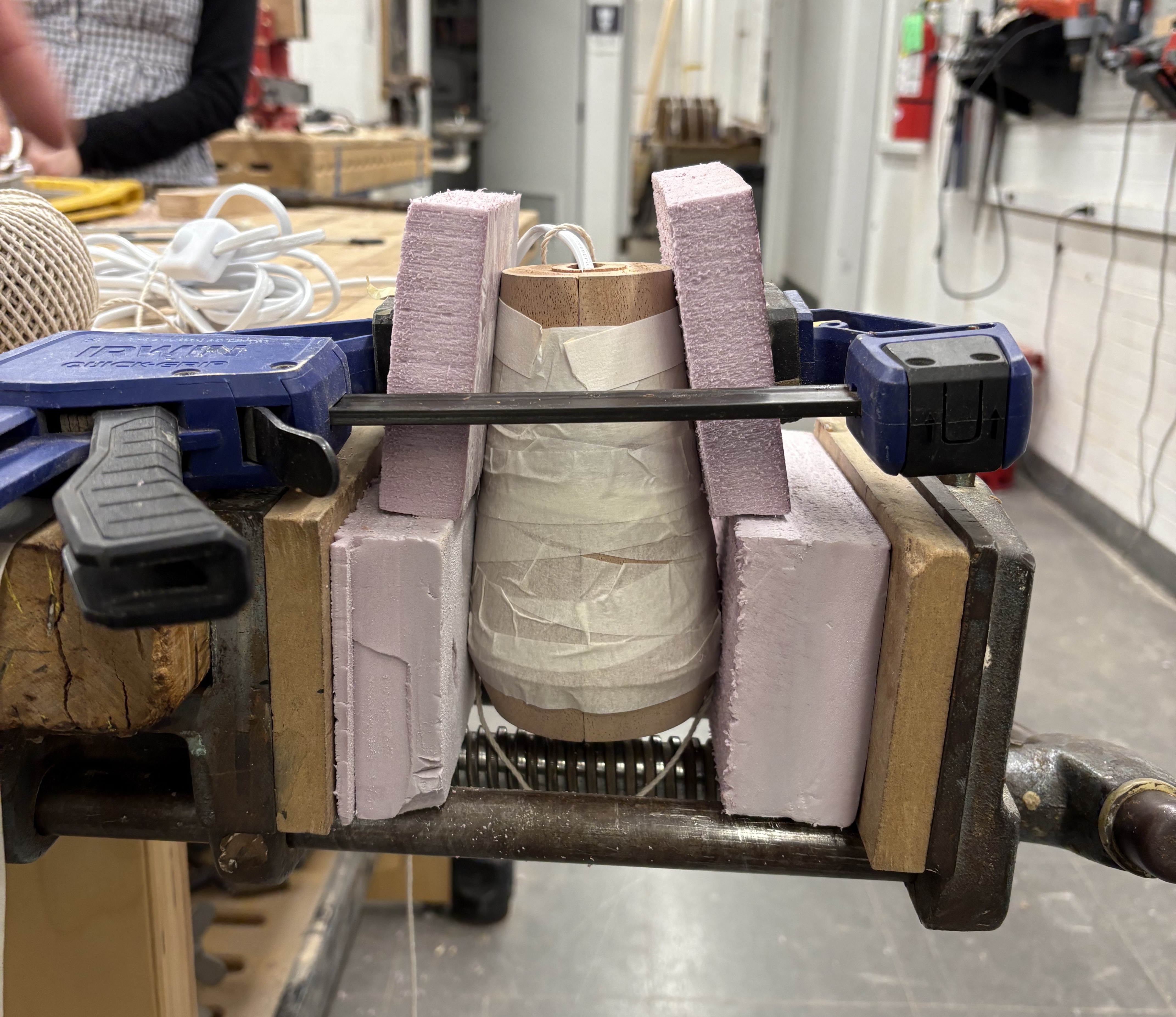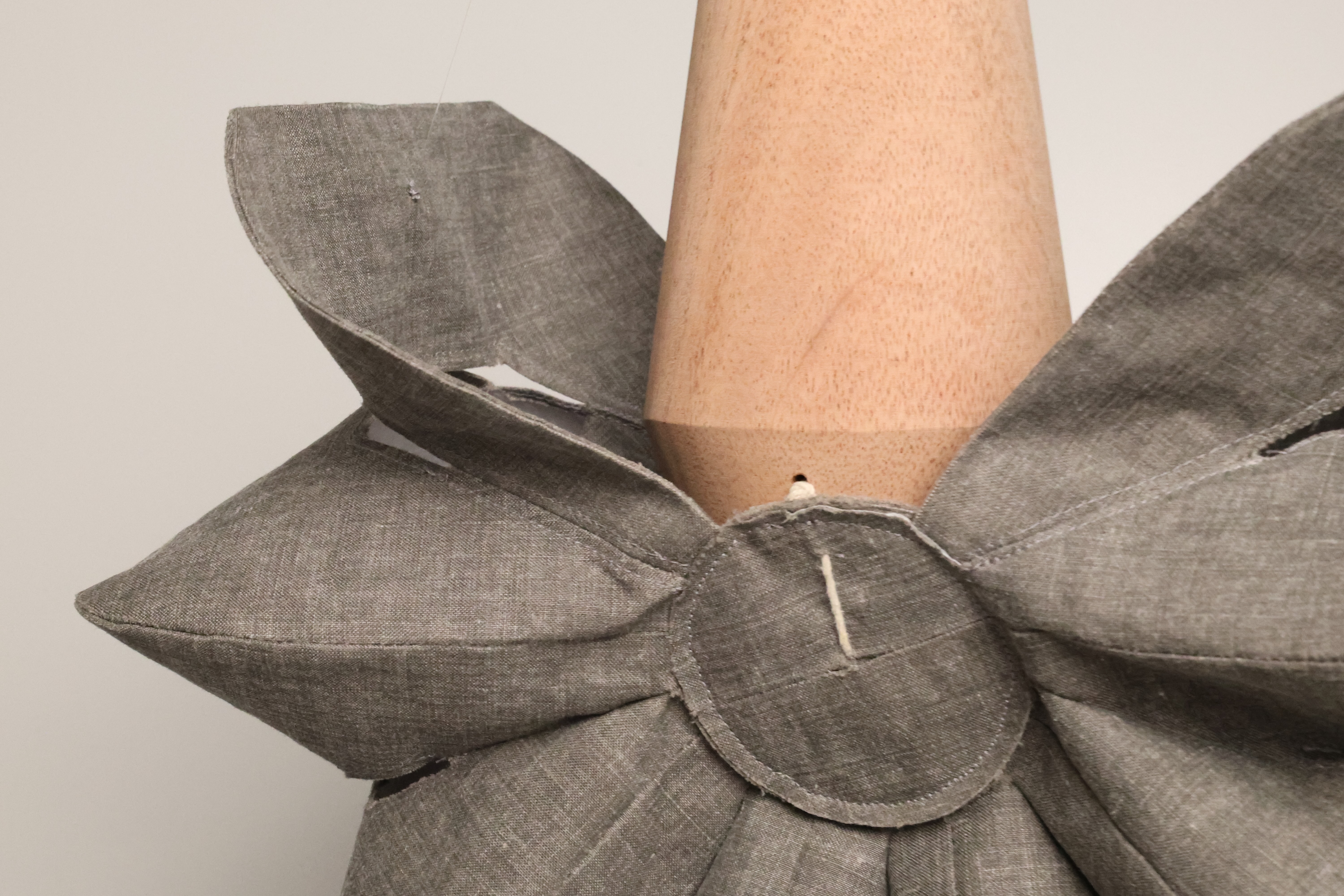 I observed objects that have rotational qualities, such as glassware or paper lamps, and developed profiles of a single unit that could create interesting forms when turned around an axis. Once the final unit was established and if the lamp shade would be a fully closed form or left open, the design of the wooden base was established to complement the proportions.