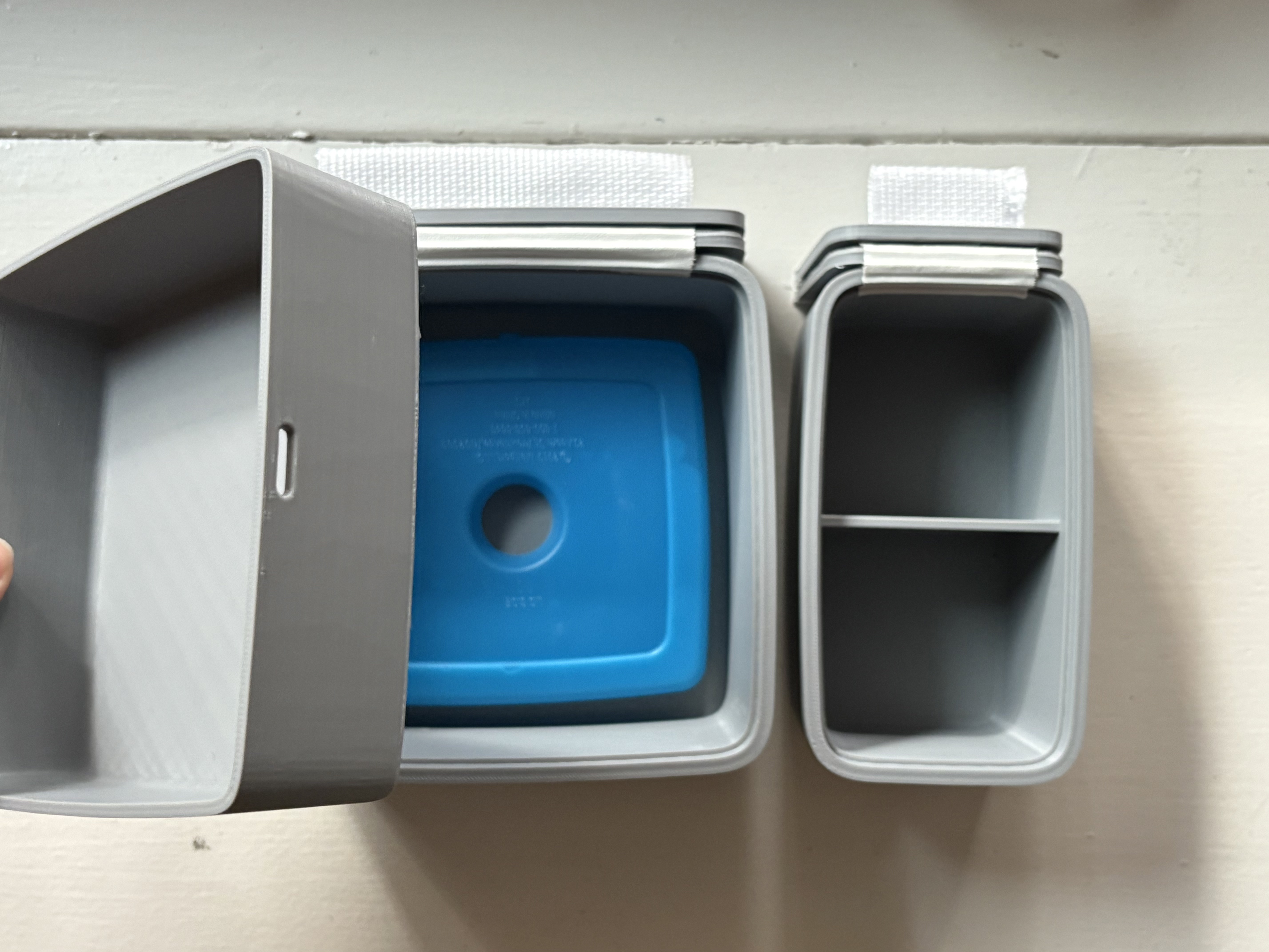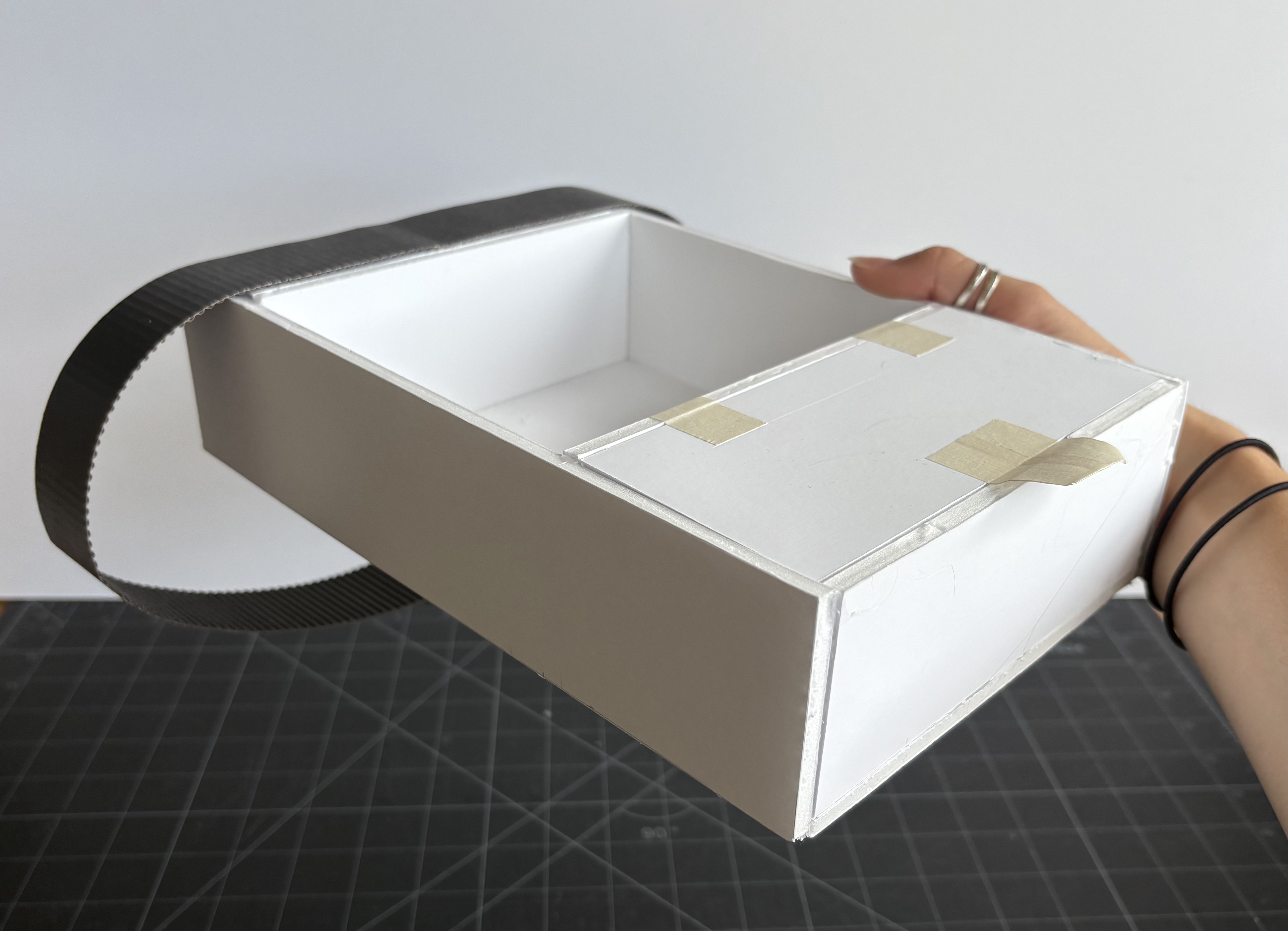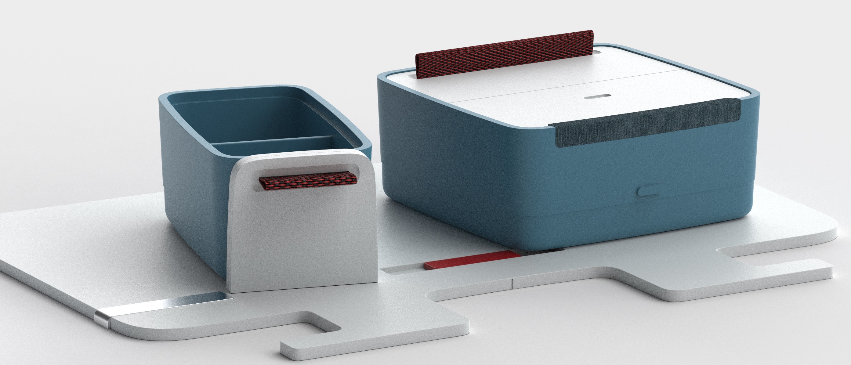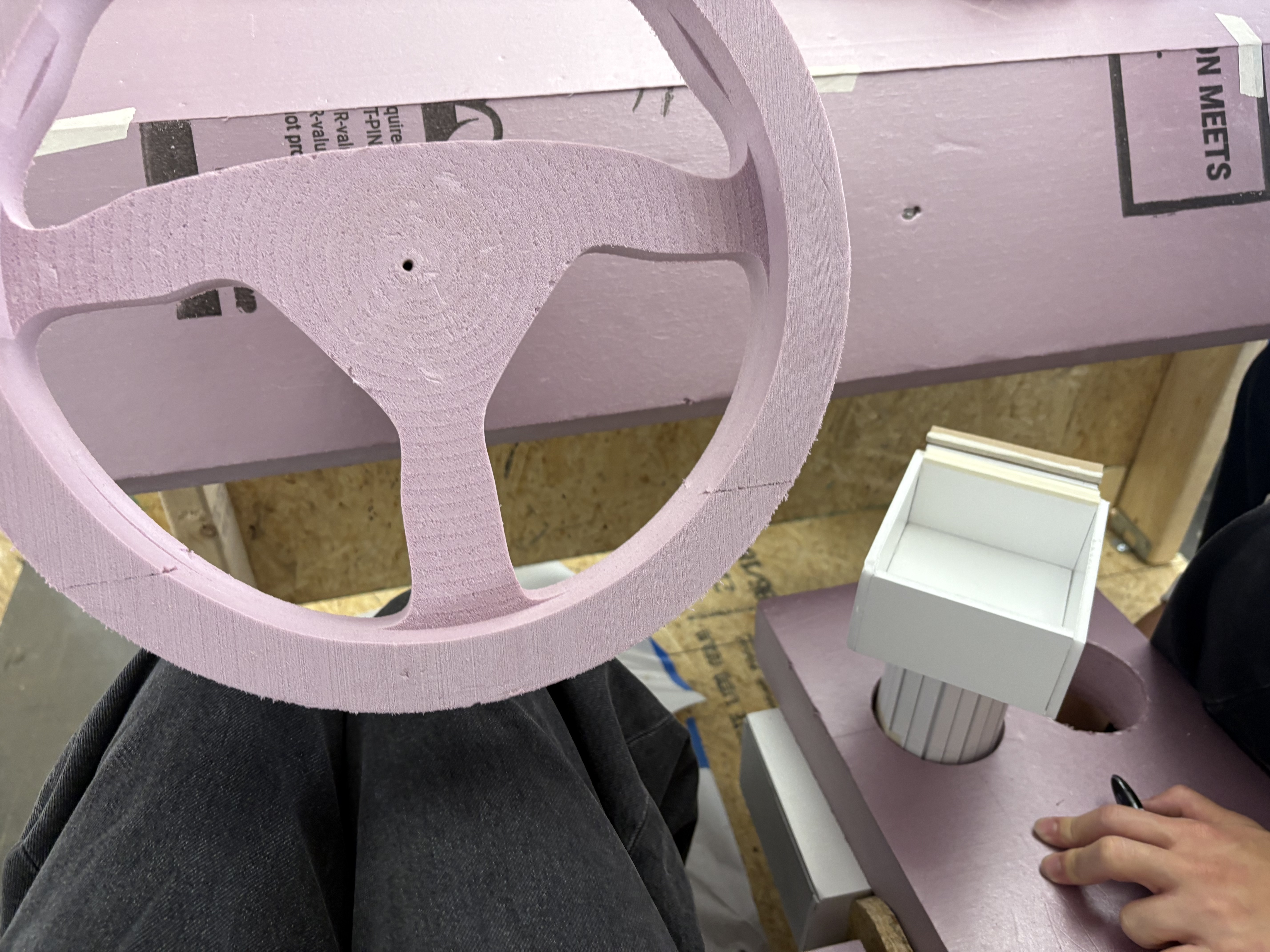 I explored different areas of the car this experience could be located, and how it would be accessed. After much pivoting, I designed a container with a lid that is able to fold into itself for a quick, mess-free meal. A tray that rests on the steering wheel acts as a table surface, which can then be folded and stored away under the containers.