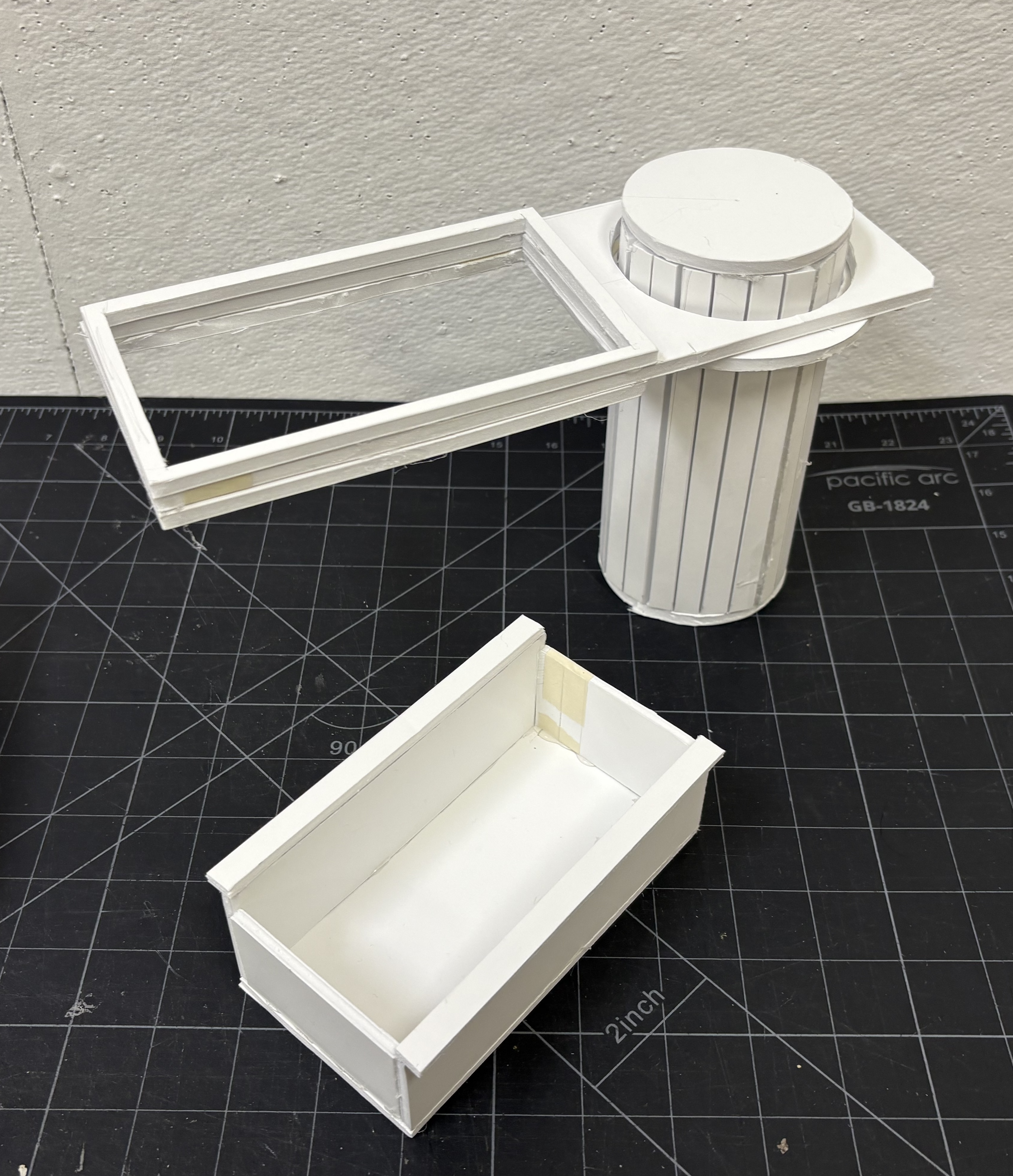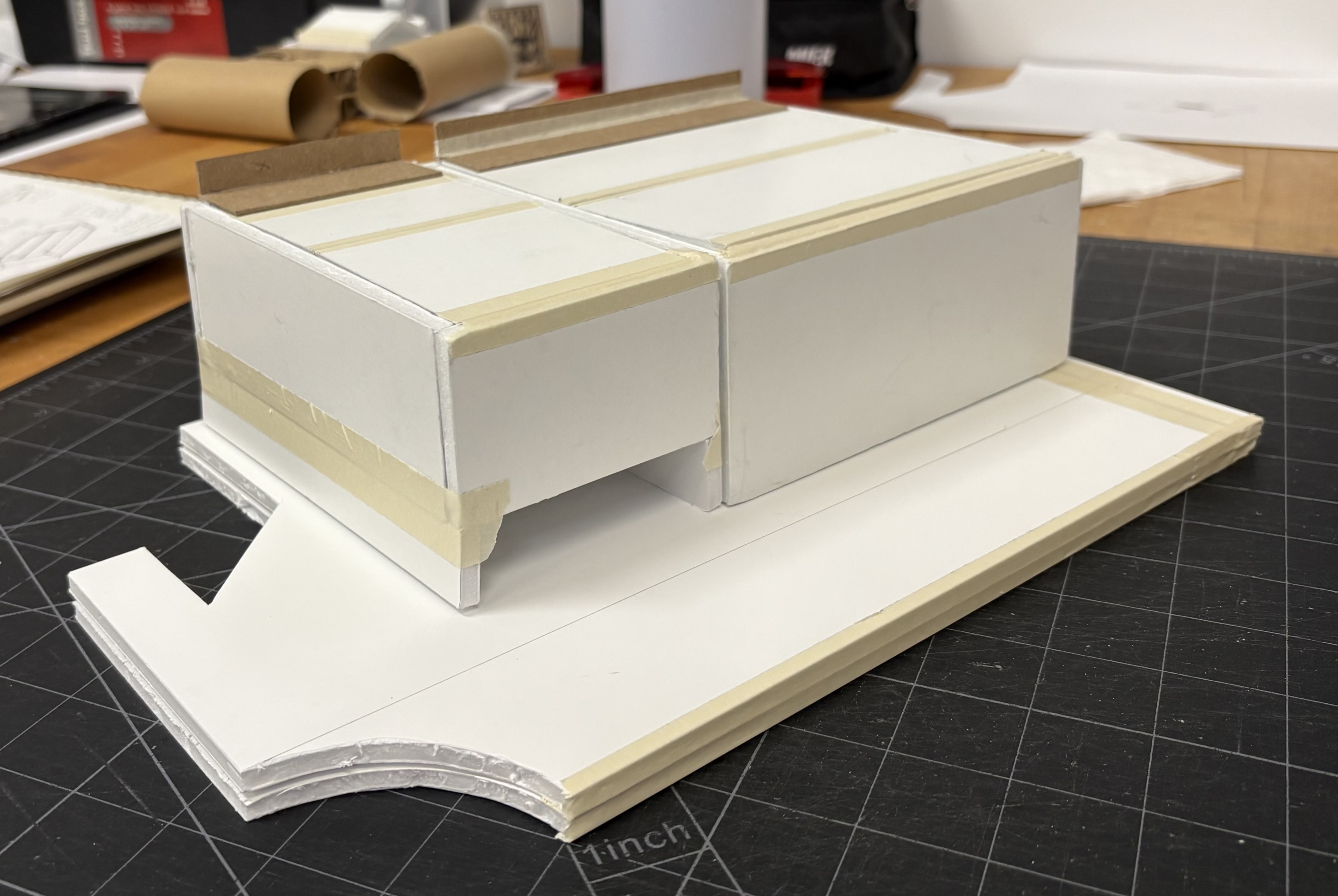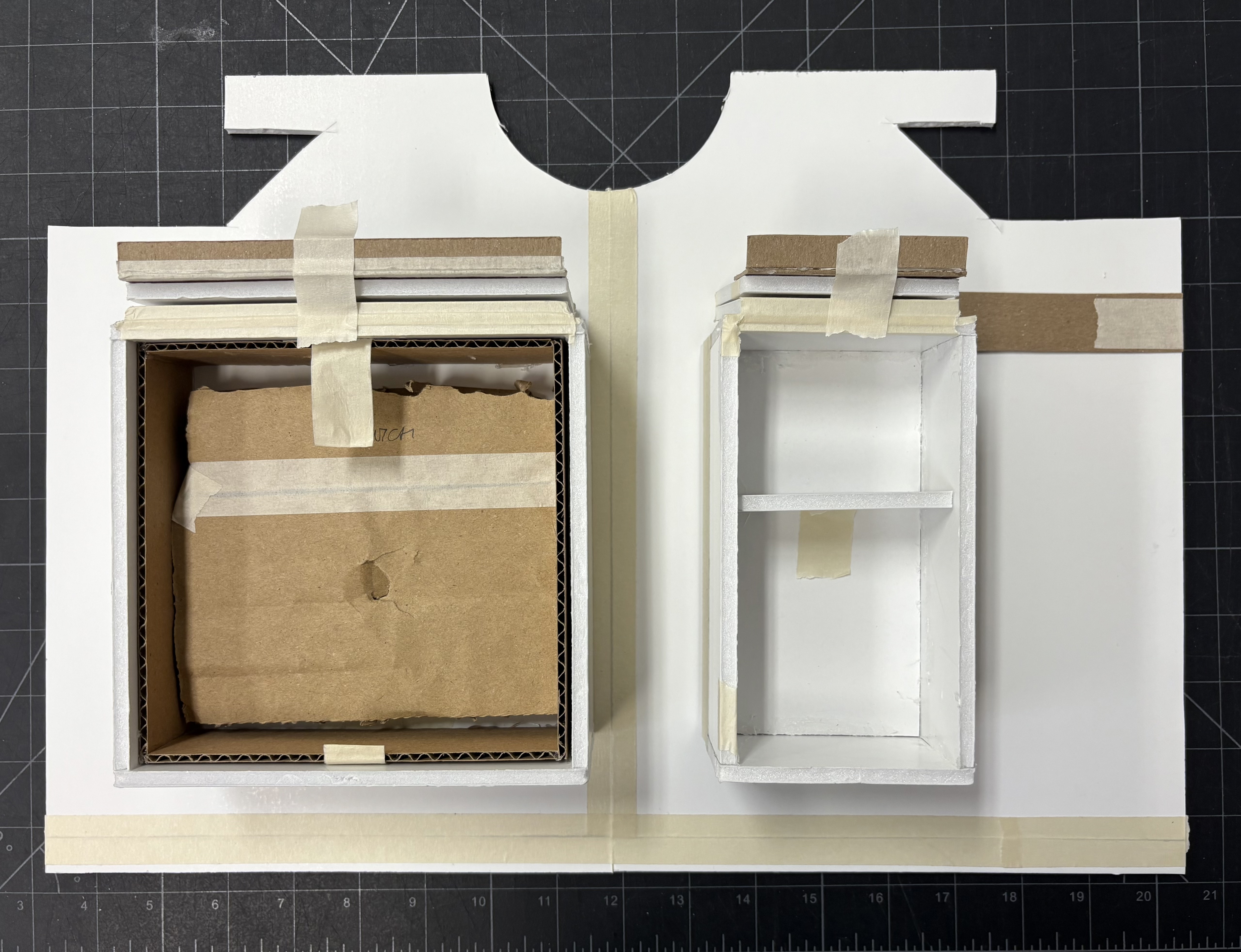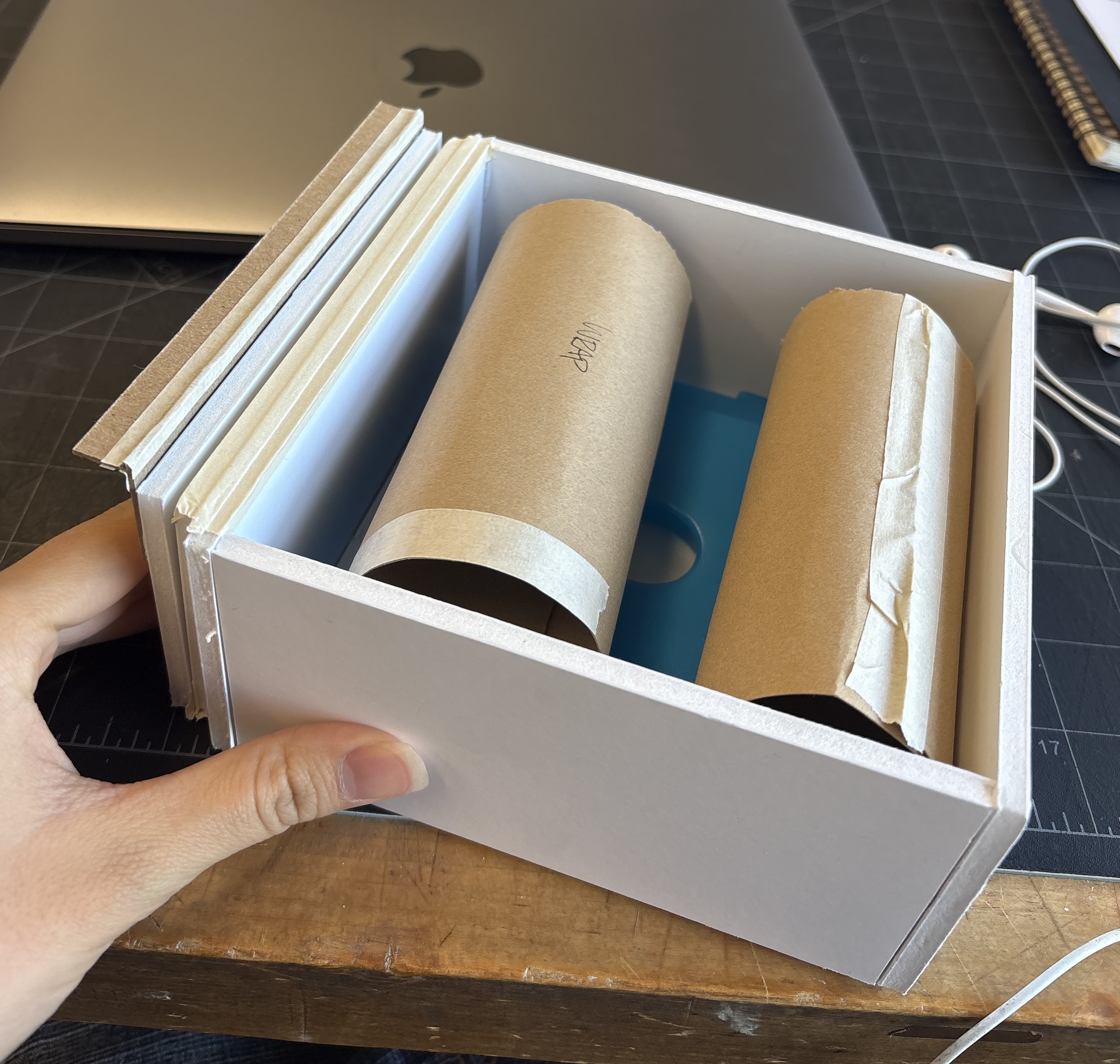 I explored different areas of the car this experience could be located, and how it would be accessed. After much pivoting, I designed a container with a lid that is able to fold into itself for a quick, mess-free meal. A tray that rests on the steering wheel acts as a table surface, which can then be folded and stored away under the containers.